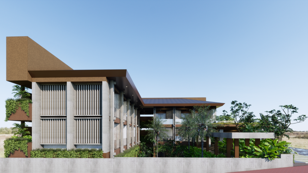 The site’s descending contour became a key consideration in the planning process, particularly in defining building orientation. Instead of flattening the land, the existing topography was treated as an opportunity to organize the project into a layered spatial sequence: the upper level accommodates guest arrival and the restaurant, the middle levels are dedicated to the swimming pool and outdoor seating, while the lower levels provide more private accommodation zones. This arrangement allows every level to receive optimal views while ensuring the entire site is used efficiently and meaningfully.